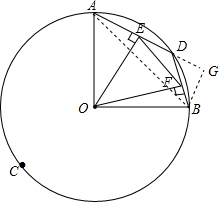 分析 (1)由∠AOB=90°,根据圆心角、弧、弦的关系即可求得$\widehat{ACB}$的度数以及∠ADB的度数;