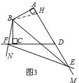 如图3,在AE上截取AH=CF,连接BH,![]()