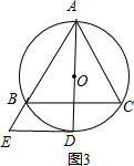 (3)如图3,当点D运动到$\widehat{BC}$的中点时,DE与⊙O相切.