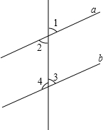 如图,直线a∥b,∠1=48°,求∠2,∠3,∠4的度数?