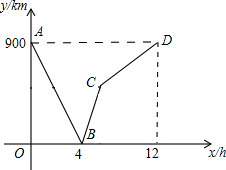 一列快车从甲地驶往乙地,一列慢车从乙地驶往甲地,两车同时出发,设慢车行驶的时间为x(h),两车之间的距离为y(km),图中的折线表示y与x之间的函数关系.根据图象进行以下探究: