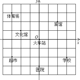 火车站(0,0),宾馆(2,2),体育场(-3,3),文化馆(-2,1),