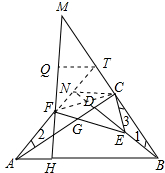 (2)延长AF交BC的延长线于点T,延长BD交AT于N,连接NC、FC,先证出∠ANB=∠BCD=90°,再证明△TNC∽△TBA,得出∠TNC=∠CBA=∠CGE,证出N、F、E、C四点共圆,得出∠ENF=∠ECF=90°,证出FA=FC=FT,过T作TQ∥AB,交MH于点Q,则QT=AH=$\frac{1}{3}$BH,得出MQ=$\frac{1}{3}$MH,即可得出结论.