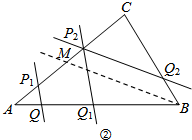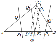 当点P在DE上时,过点P2只能画出2条截线P2Q1、P2Q2,分别使∠AP2Q1=∠ACB,∠BP2Q2=∠BCA,