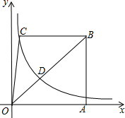 (x>0)经过正方形ABCD顶点D,与边BC交于点E,连接OD、OE、DE,若OD⊥DE,则k的值为