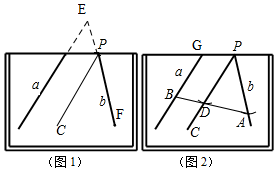 解:(1)如图1,作出直线a、b所成的角E,