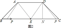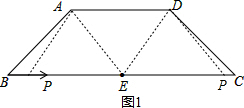 £¨2£©¸ù¾ÝƽÐÐËıßÐÎ¶Ô±ßÆ½ÐÐÇÒÏàµÈ£¬·ÖµãPÔÚµãEµÄ×ó±ßÓëÓÒ±ßÁ½ÖÖÇé¿ö£¬PE=AD=5£¬È»ºóÇó³öBPµÄ³¤¶È£¬ÔÙ¸ù¾Ý·³Ì¡¢Ê±¼ä¡¢ËٶȵĹØÏµÇó½â£»