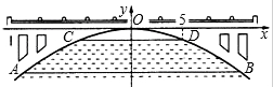 (2)有一条船以5km/h的速度向此桥径直驶来,当船距离此桥35km,桥下水位正好在AB处,之后水位每小时上涨0.25m,当水位达到CD处时,将禁止船只通行,如果该船的速度不变,那么它能否安全通过此桥?