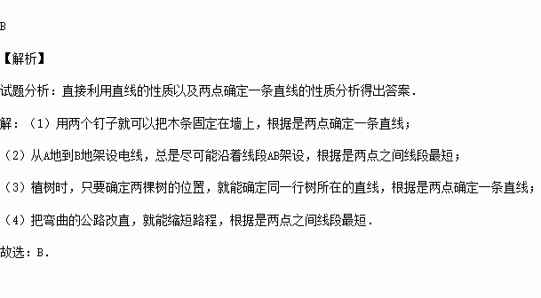 其中能用“两点确定一条直线”来解释的现象有( )