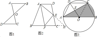 (2)连接OC,由AD∥BC,点E是腰DC的中点,可得AE=EC,由OA=OC,得△AOC是等腰三角形,由等腰三角形的性质得,OD⊥AC,∠AOD=∠COD,在同圆或等圆中,相等圆心角所对弧相等,所以$\widehat{AD}$=$\widehat{DC}$,因为DC∥AB,由平行线的性质得,∠DCA=∠CAB,所以$\widehat{AD}=\widehat{BC}$,等量代换得$\widehat{AD}=\widehat{DC}=\widehat{BC}$,得∠CAB=30°,∠BOC=60°,因S阴=S△AOC+S扇形BOC,利用三角形和扇形的面积公式代入求得结果.