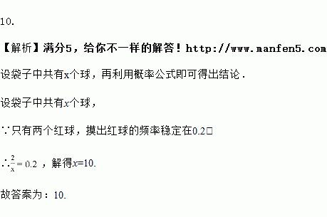 在一个不透明的袋子里,装有若干个小球.这些小球只有颜色上的区别.已知其中只有两个红球.每次摸球前都将袋子里的球搅匀.随机摸出一个小球,记下颜色并将球放回袋子里.通过大量重复试验后,发现摸出红球的频率稳定在,那么据此估计,袋子里的球的总数大约是________个.![]()