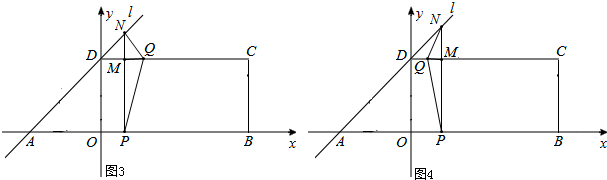 分析 (1)利用△AOD是等腰直角三角形,四边形ABCD是一个面积为48的直角梯形以及点B的坐标,求出OA=OD=4,即可确定点A的坐标为(-4,0),点D的坐标为(0,4),然后利用待定系数法可求出直线l的解析式;