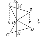 解答 解:(1)作AE⊥x轴于E,BF⊥x轴于F,