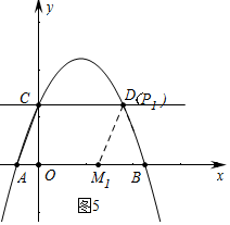 (4)①如图5中,当P1与D重合时,四边形ACDM1是平行四边形,易知AM1=CD=4,∴M1(3,0).![]()