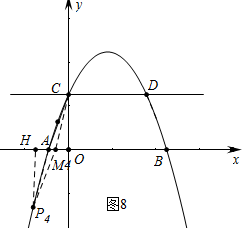④如图8中,当四边形ACM4P4是平行四边形时,同法可得M4(3-$\sqrt{14}$,0).![]()