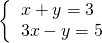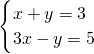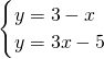 一次函数y=3-x与y=3x-5的图象交点坐标是________,它可以看作是二元一次方程组________的解.