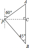 分析 作辅助线PC⊥AB交AB于点C,设BC长度为x,则AC=AB-BC=100($\sqrt{3}$+1)-x,在△PBC根据∠B=45°,可得BC=PC=x,然后在△PAC中根据三角函数求出PA的长度.