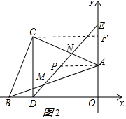 (3)解:作AP∥OB交DE于P,如图所示:则△APM∽△BDM,△APE是等腰直角三角形,![]()