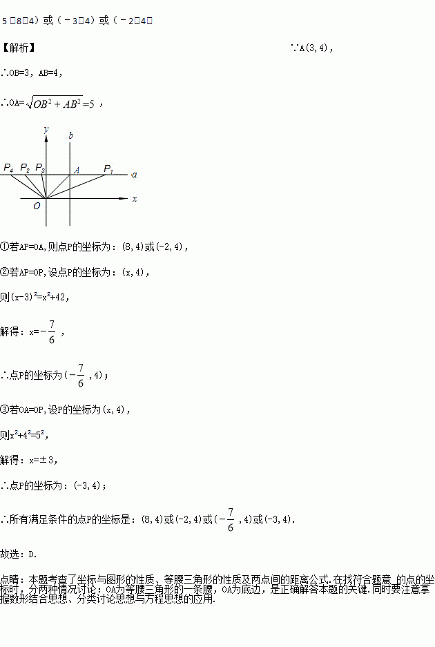 线段OA长______; (2)若在直线a上存在点P,使△AOP是以OA为腰的等腰三角形.那么所有满足条件的点P的坐标是________________.