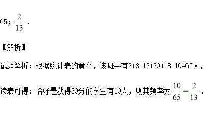 那么该班共有 人,随机地抽取1人,恰好是获得30分的学生的频率是 .