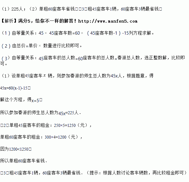 (2)已知一辆45座客车的租金每天250元,一辆60座客车的租金每天300元,问单租哪种客车省钱?