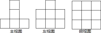 分析 由已知条件可知,主视图有3列,每列小正方数形数目分别为1,3,1,左视图有2列,每列小正方形数目分别为2,3,2.俯视图有3列,每一列的正方形个数为3,3,3据此可画出图形.