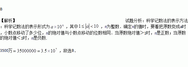 某公司为4·20芦山地震灾区捐款3500万元,其中3500万用科学记数法表示为( ).