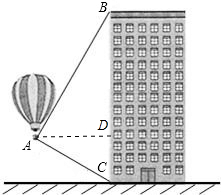 分析 作AD⊥BC于D,则∠BAD=66°,∠DAC=36°,在Rt△ABD中,求出BD,在Rt△ACD中,求出CD,二者相加即为楼高BC.