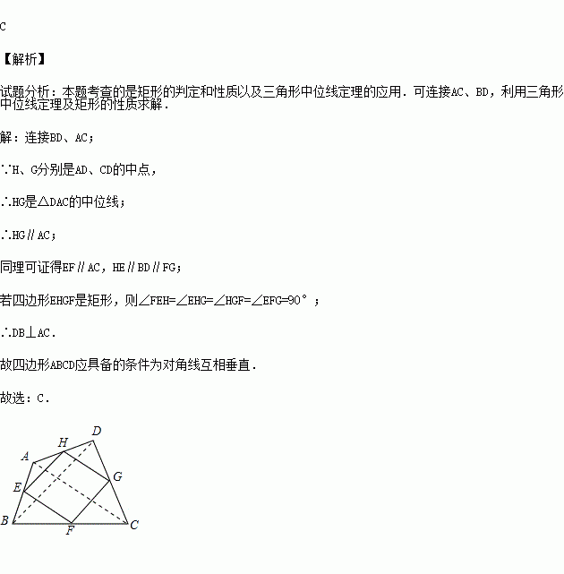 如图,E、F、G、H分别是四边形ABCD四条边的中点,要使四边形EFGH为矩形,四边形ABCD应具备的条件是( ).