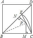 如图,正方形ABCD的边长为2cm,以B为圆心,BC长为半径画弧交对角线BD于E点,连接CE,P是CE上任意一点,PM⊥BC,PN⊥BD,垂足分别为M、N,则PM+PN的值为________cm.