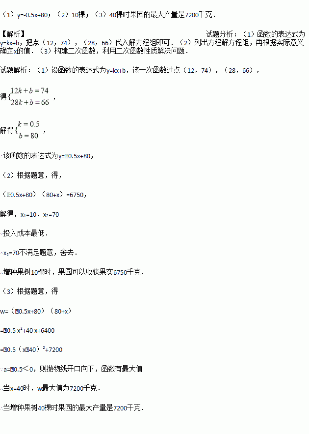 (2)ÔÚͶÈë³É±¾×îµÍµÄÇé¿öÏ£¬ÔöÖÖ¹ûÊ÷¶àÉÙ¿Ãʱ£¬¹ûÔ°¿ÉÒÔÊÕ»ñ¹ûʵ6750ǧ¿Ë£¿