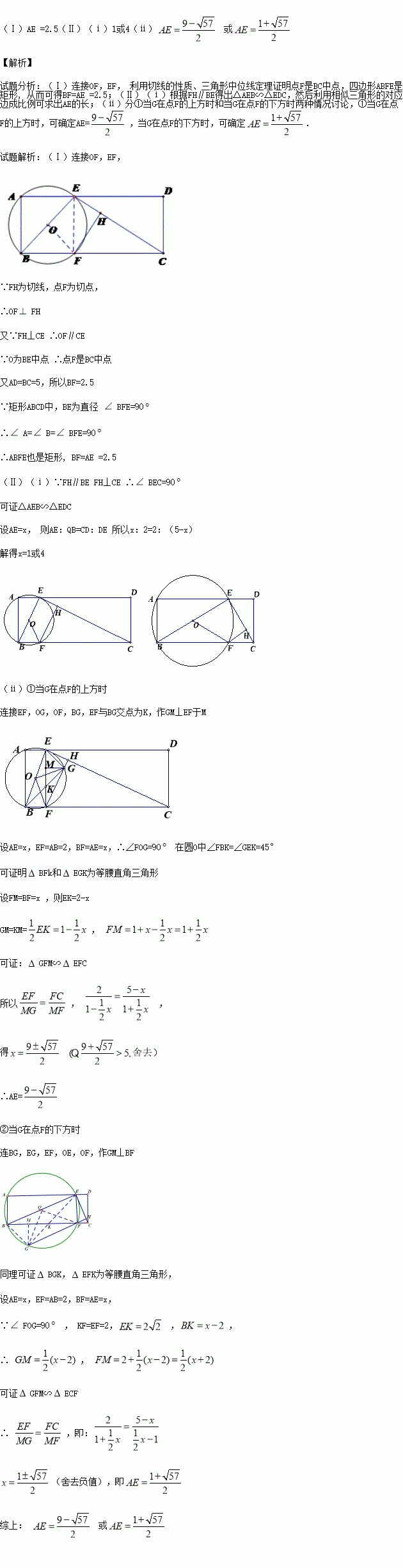 已知矩形ABCD中,AB=2,AD=5,点E是AD边上一动点,连接BE、CE,以BE为直径作⊙O,交BC于点F,过点F作FH⊥CE于H.