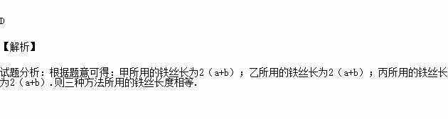 C.丙种方案所用铁丝最长 D.三种方案所用铁丝一样长