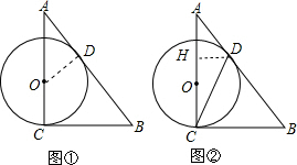 分析 (1)作OD⊥AB于D,如图①,先根据勾股定理计算出AB=10,再证明Rt△AOD∽Rt△ABC,利用相似比计算出OD=3,由于OD等于半径OC,于是根据切线的判定定理即可得到AB是⊙O的切线;