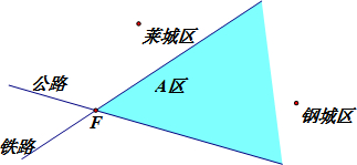 2014年经过莱芜的中南高速铁路即将竣工,届时与京沪高速公路使得莱芜区位发展优势将更加凸显.为了充分利用资源,市政府决定在莱城区与钢城区之间的A区建设一个物资中转站,要求与铁路与公路的距离相同,且与两区的距离也相同,请在下图中画出中转站的位置.(保留作图痕迹,不写作法)