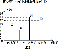 (2)文学类书籍的扇形圆心角度数为:360×$\frac{14}{40}$=126°;