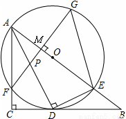 如图,在Rt△ABC中,∠C=90°,AD是角平分线,DE⊥AD交AB于E,△ADE的外接圆⊙O与边AC相交于点F,过F作AB的垂线交AD于P,交AB于M,交⊙O于G,连接GE.