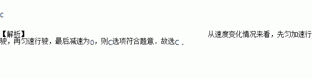 小明一出校门先加速行驶,然后匀速行驶一段后,在距家门不远的地方开始减速,而最后停下,下面哪一副图可以近似地刻画出以上情况:( )