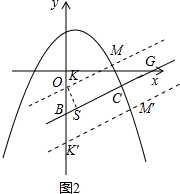 在y轴上取一点K,作KS⊥BC于S,KM∥BC交抛物线于M,使KS=$\frac{\sqrt{10}}{2}$,如图2,