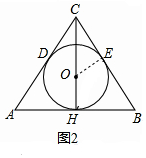 (2)如图2,连接OE,则OE⊥AC,![]()