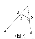 (2)如图2,在△ABC纸片中剪去△CED,得到四边形ABDE,若∠1+∠2=230°,则剪掉的∠C=_________;
