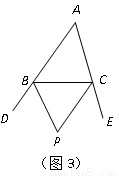 (3)小明联想到了曾经解决的一个问题:如图3,在△ABC中,BP、CP分别平分外角∠DBC、∠ECB,∠P与∠A有何数量关系?请直接写出答案_ .