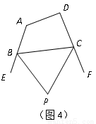 (4)如图4,在四边形ABCD中,BP、CP分别平分外角∠EBC、∠FCB,∠P与∠A、∠D有何数量关系?为什么?(若需要利用上面的结论说明,可直接使用,不需说明理由)
