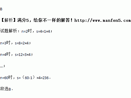 由点组成的正方形,每条边上的点数n与总点数之间的关系如图所示,则当n=60时,计算 s的值为( )