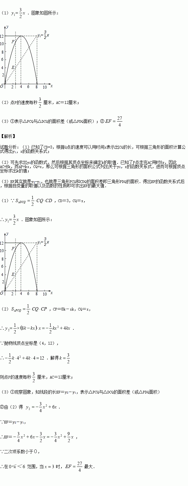 ,△DCQ的面积为y1平方厘米,△PCQ的面积为y2平方厘米.