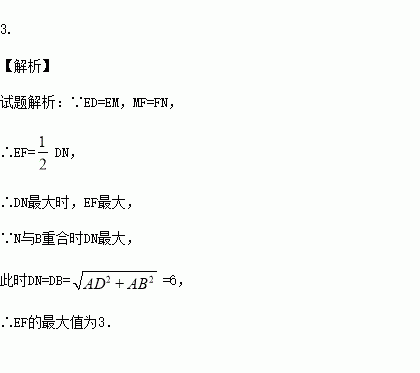 ,AD=3,点M,N分别为线段BC,AB上的动点(含端点,但点M不与点B重合),点E,F分别为DM,MN的中点,则EF长度的最大值为 .