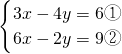 ①×2得,6x-8y=12③,