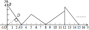分析 先求出直角三角形斜边上的高,然后根据旋转的性质观察△OAB连续作旋转变换,得到△OAB每三次旋转后回到原来的状态,并且每三次向前移动了3+4+5=12个单位,于是判断三角形的状态,然后可计算出它的直角顶点的横坐标,从而得到三角形⑩的直角顶点的坐标.