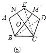 ②可参照(1)先得出三角形BCD和CDE全等,然后通过证三角形CEN和BDM全等来得出结论,在证三角形CEN和BDM全等的过程中也是通过∠BON与正五边形的内角相等得出一组对应角相等,然后根据正五边形的内角减去第一对全等三角形中得出的相等角来得出另一组对应角相等,可通过△BCD≌△CDE得出CE=BD,那么可得出三角形CEN和BDM全等,由此可得证.