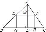 分析:(1)根据矩形的性质得出EF∥BC,得出相似三角形,推出比例式,求出MD的值,G根据0<EF<BC得出x的取值范围,进而得出结论;